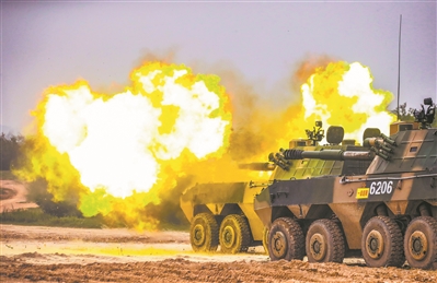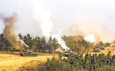紅方偵察分隊抵近藍方前沿陣地,迅速傳回“敵情”。指揮所果斷下令,指揮炮兵分隊、電子對抗分隊、陸航火力和步兵突擊車攻擊群打出一套“組合拳”,對藍方陣地實施猛烈攻擊?;鹆Υ驌暨^后,藍方殘余力量依托有利地形負隅頑抗。抓住時機,紅方前沿突擊隊順勢展開強攻,在藍方火力封鎖區(qū)“撕”開一個突破口,成功占領(lǐng)陣地。