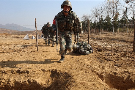 一名瘦高精干的中尉全副武裝,手持狙擊步槍來回穿梭于近千米的障礙中,身手矯捷、步履輕盈,他就是陸軍第80集團軍某旅排長陳晶。