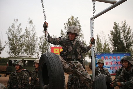 圖為陳晶備戰(zhàn)比武競賽,苦練軍事技能。崔健 攝