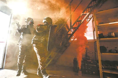 前不久,武警上海總隊(duì)某支隊(duì)從細(xì)節(jié)入手展開新一輪反恐訓(xùn)練。圖為突擊隊(duì)員反復(fù)研究如何利用煙霧彈掩護(hù)突入樓內(nèi)。李巖攝