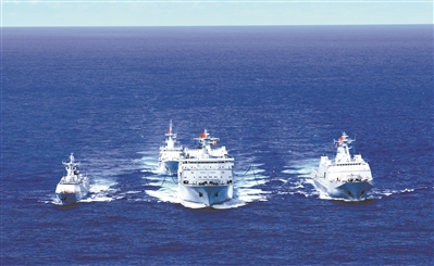 接到指令,準備接受補給的3艘艦船加速前出占領(lǐng)補給陣位,與補給艦查干湖艦組成“兩橫一縱”補給隊形。與此同時,艦載直升機迅速升空,協(xié)同衡陽艦擔負編隊警戒任務(wù)。