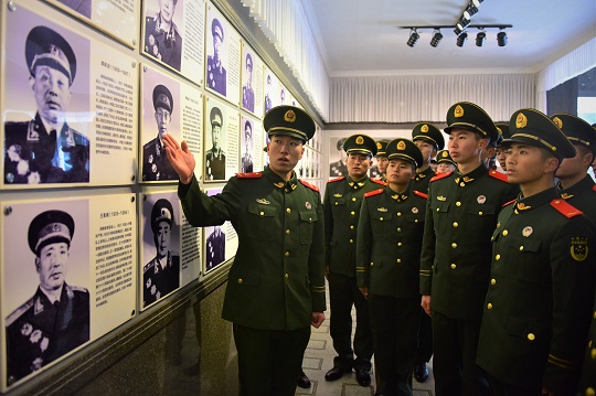 圖為武警井岡山中隊紅色講解員在北山烈士陵園展館,為新兵介紹從井岡山走出的開國將帥。 萬立恒 攝