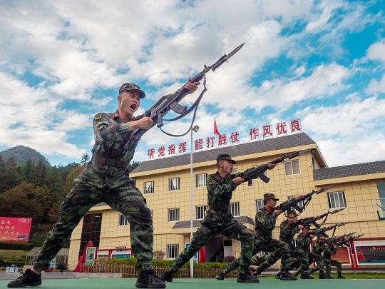 圖為武警井岡山中隊官兵進行刺殺訓(xùn)練。 吳偉 攝