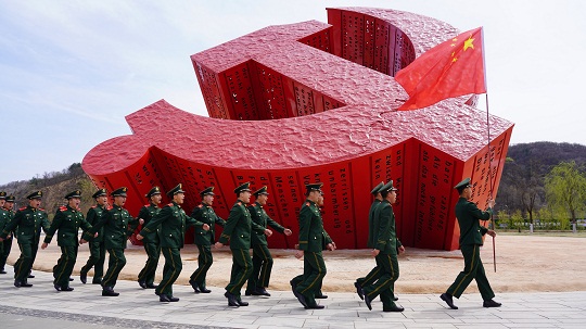 圖為武警延安支隊(duì)執(zhí)勤一中隊(duì)官兵開展主題黨日活動(dòng)。 黨鵬鑫 攝