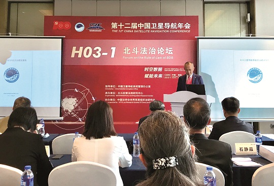 圖為中國(guó)衛(wèi)星導(dǎo)航年會(huì)北斗法治論壇現(xiàn)場(chǎng)。 張文清 攝
