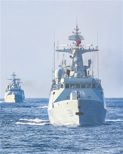 艦艇編隊(duì)駛向訓(xùn)練海域。