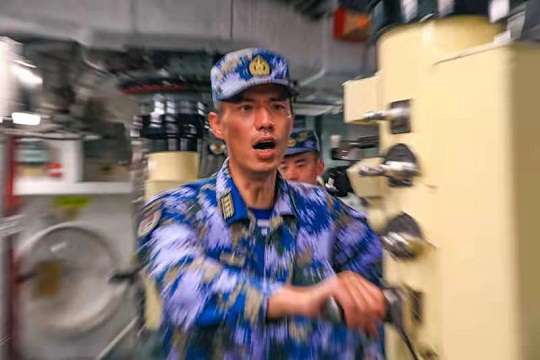 無獨有偶。一次紅藍對抗中,艙室內的一個部件突發(fā)故障,海水立即灌進來,隨時可能出現(xiàn)不可挽回的局面。胡曉舟坐鎮(zhèn)指揮艙,一邊關注損害管制,一邊繼續(xù)指揮潛艇“戰(zhàn)斗”,那一仗打得特別艱難。