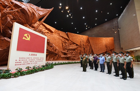 圖為武警合肥支隊(duì)官兵與參戰(zhàn)老兵一起重溫入黨誓詞。徐偉 攝