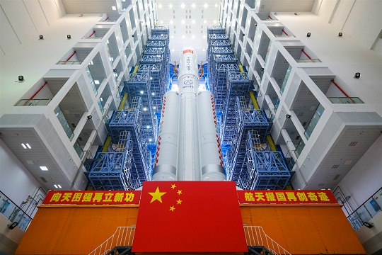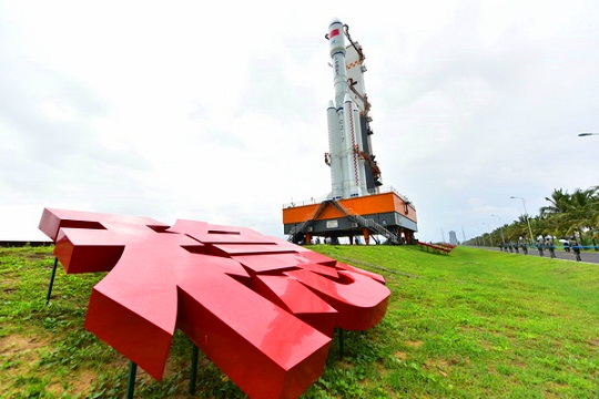 圖為文昌發(fā)射場(chǎng)進(jìn)行火箭轉(zhuǎn)運(yùn)。