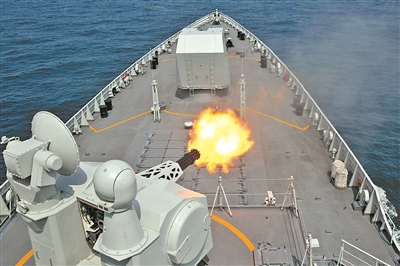 “上級命我艦立即對‘?dāng)场癁╊^陣地實施火力打擊!” 艦艇編隊剛抵達訓(xùn)練海域,某艦就接到任務(wù),官兵立即進入戰(zhàn)斗狀態(tài)?!爸髋陂_始射擊?!币宦暳钕?,主炮迅速鎖定目標(biāo)并實施打擊。此時,雷達戰(zhàn)位發(fā)現(xiàn)又有空中目標(biāo)快速接近艦艇?!案迸诮M織射擊!”指揮員研判戰(zhàn)場態(tài)勢后,果斷下達攻擊命令。隆隆炮聲中,來襲目標(biāo)被擊中,空中威脅解除。