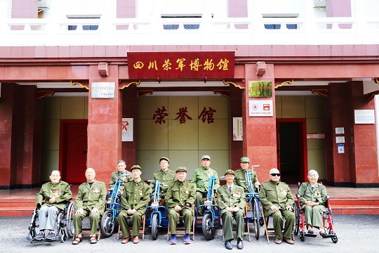 “我們有堅(jiān)強(qiáng)的意志,我們有顆永不殘廢的心……”在休養(yǎng)院內(nèi)的四川榮軍博物館里,四川省革命傷殘軍人休養(yǎng)院老戰(zhàn)士宣講團(tuán)成員涂伯毅的朗誦鏗鏘有力、聲情并茂。