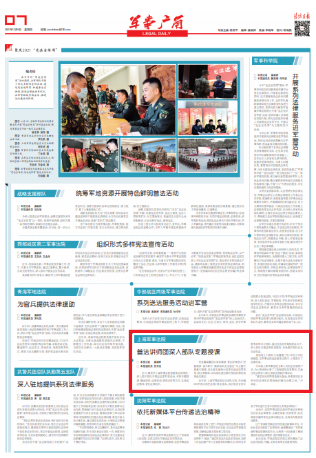 近年來,上海軍事法院結合部隊實際,先后編印《軍營中的民法典》普法讀本、訴訟知識宣傳手冊等多種學習資料;通過發(fā)放涉軍維權聯(lián)系卡片,深入部隊開展法律咨詢服務,有效維護部隊官兵合法權益。