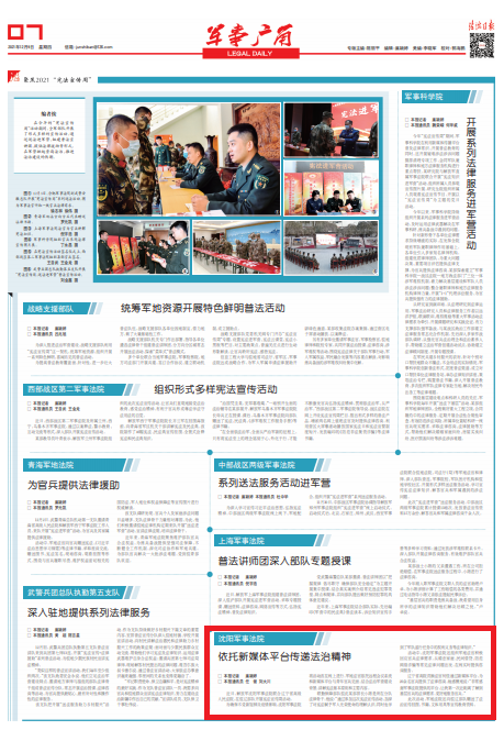 近日,解放軍沈陽軍事法院聯(lián)合遼寧省高級人民法院,在駐遼部隊開展憲法宣傳周活動。