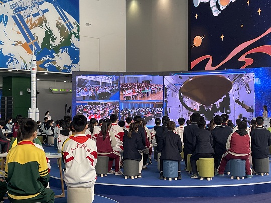 此次太空授課活動在中國科技館設(shè)地面主課堂,在廣西南寧、四川汶川、香港、澳門分設(shè)4個地面分課堂,共1420名中小學生代表參加現(xiàn)場活動。
