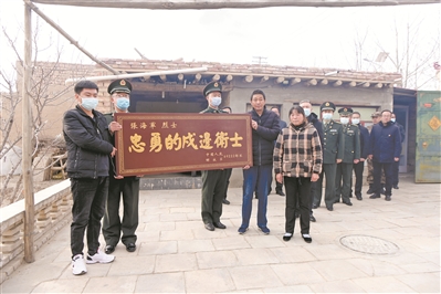 圖為軍地人員護送烈士牌匾來到烈士家中。