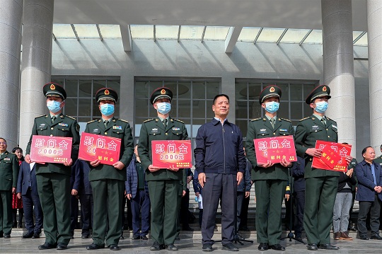 走訪慰問中,堯斯丹副省長(zhǎng)一行與部隊(duì)官兵進(jìn)行了親切交流,詳細(xì)了解部隊(duì)光輝成就、發(fā)展建設(shè)、官兵生活等情況,關(guān)切詢問部隊(duì)存在困難問題,表示:63790部隊(duì)是一支敢打硬仗、能打勝仗的英雄隊(duì)伍,部隊(duì)始終與黨和國(guó)家事業(yè)一起發(fā)展、共同進(jìn)步,為四川經(jīng)濟(jì)社會(huì)發(fā)展作出積極貢獻(xiàn),圓滿完成了2021年各項(xiàng)重大任務(wù),為推動(dòng)國(guó)家強(qiáng)軍事業(yè)再上新臺(tái)階作出重大貢獻(xiàn),并希望不斷升華鞏固軍民魚水情,精誠(chéng)團(tuán)結(jié)、與時(shí)俱進(jìn)、攜手并肩,共創(chuàng)美好未來。堯斯丹副省長(zhǎng)的講話充分體現(xiàn)了四川省各級(jí)黨委政府對(duì)強(qiáng)軍興軍事業(yè)的大力支持、對(duì)部隊(duì)官兵的深情厚愛,激勵(lì)官兵在后續(xù)任務(wù)中劈波斬浪、再立新功。