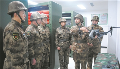 王勇軍(右二)為民兵應急分隊隊員講解無人機操控方法。逯毅 攝