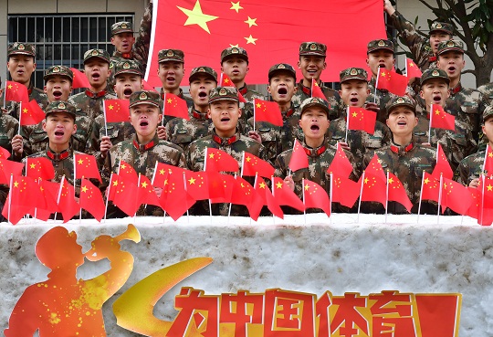 “為中國(guó)體育加油!為奧運(yùn)健兒加油……”2月8日,武警湖北總隊(duì)執(zhí)勤支隊(duì)官兵在休息時(shí)間用積雪堆出吉祥物冰墩墩,手持國(guó)旗集體打卡,為冬奧健兒加油,鼓勵(lì)大家學(xué)習(xí)奧運(yùn)精神,矢志練兵備戰(zhàn)。