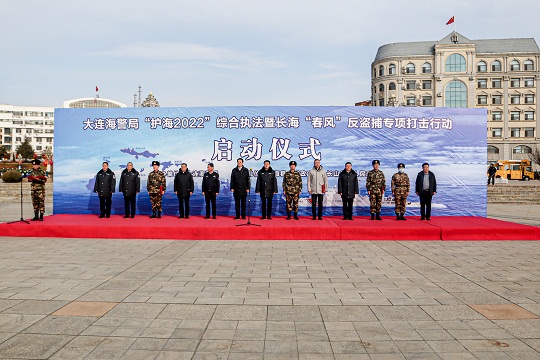 2月18日,遼寧大連海警局“護海2022”綜合執(zhí)法行動正式啟動,大連市副市長、公安局局長張振鐸、遼寧海警局黨委書記張純出席啟動儀式,大連市相關(guān)部門及長??h人民政府主要領導列席。海警執(zhí)法員、公安干警、漁政工作人員、群防群治代表共同見證綜合執(zhí)法行動啟動。
