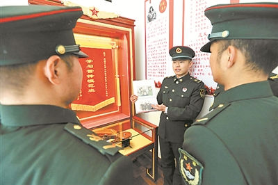 圖②:翻開相冊(cè),分享照片背后的故事,已成為該班戰(zhàn)士爭(zhēng)取新榮譽(yù)的動(dòng)力源泉。高翔 錢泓江 攝