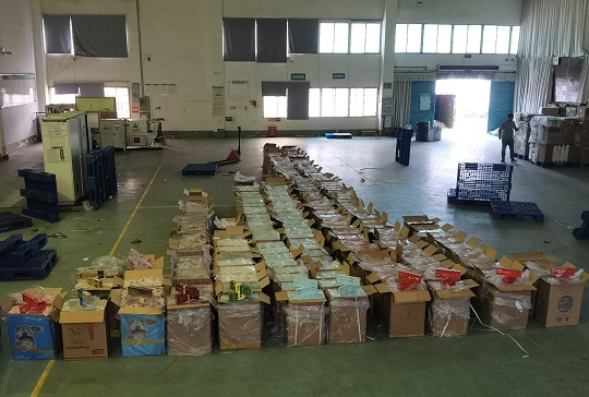 3月14日清晨6時(shí)許,該局鐵山港工作站接群眾報(bào)警稱,在北海市鐵山港區(qū)興港鎮(zhèn)附近海域有1艘擱淺木質(zhì)船舶,其上有大量貨物且被篷布遮蓋,疑為走私船舶。接警后,該站迅速調(diào)派兩隊(duì)執(zhí)法員對相關(guān)海域進(jìn)行海陸聯(lián)合搜查。上午9時(shí)許,海警執(zhí)法員在興港鎮(zhèn)淡水口村附近海域發(fā)現(xiàn)該艘擱淺木船,隨即對現(xiàn)場進(jìn)行封控,并通知防疫部門進(jìn)行防疫消殺。當(dāng)日晚8時(shí)許,經(jīng)防疫消殺后現(xiàn)場檢查,木船上裝載有“中華”“荷花”“芙蓉王”等品牌香煙一批,現(xiàn)場未發(fā)現(xiàn)該木船及所裝載香煙的任何相關(guān)合法手續(xù),亦無人對木船及香煙主張權(quán)利。因涉嫌走私,海警執(zhí)法員依法現(xiàn)場查扣涉案木船1艘,查獲涉嫌走私香煙12576條。