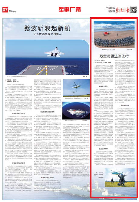 近年來(lái),海軍各級(jí)著眼備戰(zhàn)急需,深入宣傳國(guó)際法、海洋法、海戰(zhàn)法等與海軍備戰(zhàn)打仗緊密相關(guān)的法律法規(guī),普及刑法關(guān)于危害作戰(zhàn)的相關(guān)條文,著力強(qiáng)化官兵依法行動(dòng)和軍法從嚴(yán)意識(shí)。