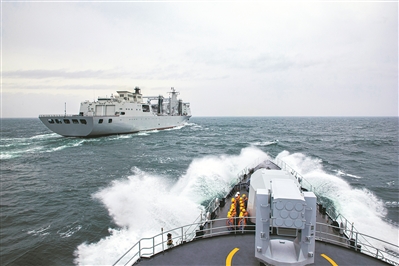 海面威脅解除,編隊(duì)又展開航行補(bǔ)給訓(xùn)練。此時(shí),海況更加惡劣,艦艇在波峰浪谷間搖擺起伏。官兵們克服困難,齊心協(xié)力投入訓(xùn)練。