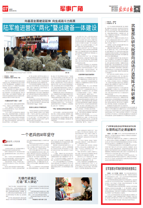 “軍事法院擔(dān)負(fù)提供涉軍維權(quán)服務(wù)職能,在基層設(shè)立涉軍維權(quán)服務(wù)聯(lián)絡(luò)室,也是回應(yīng)官兵殷切期盼。下一步,我們將聚焦一線部隊(duì)官兵需求,將此項(xiàng)工作機(jī)制在駐鄂部隊(duì)普遍推開(kāi),構(gòu)建多軍兵種區(qū)域性涉軍維權(quán)服務(wù)網(wǎng)絡(luò),為部隊(duì)和軍人軍屬提供全方位精準(zhǔn)化維權(quán)服務(wù)和法律保障。”武漢軍事法院院長(zhǎng)古海源說(shuō)。