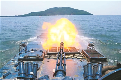 圖③:海軍陸戰(zhàn)隊(duì)某旅組織跨晝夜海上實(shí)彈射擊訓(xùn)練,一批新馭手、新射手在復(fù)雜海域經(jīng)受考驗(yàn)。圖為步戰(zhàn)車對岸上目標(biāo)進(jìn)行射擊。簡貴洋 攝