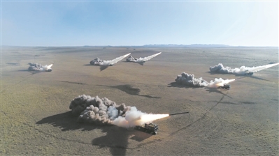 圖②:第82集團(tuán)軍某旅深入草原腹地參加聯(lián)合演練,探索和檢驗(yàn)深化陸空協(xié)同的訓(xùn)法戰(zhàn)法。圖為火箭彈出膛瞬間。耿露 攝