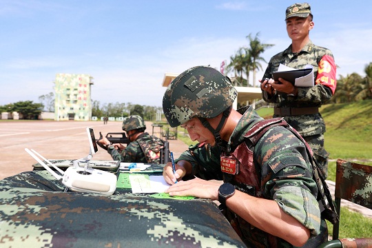 圖為參賽隊員在演練中進行偵察繪圖。雷轍 攝