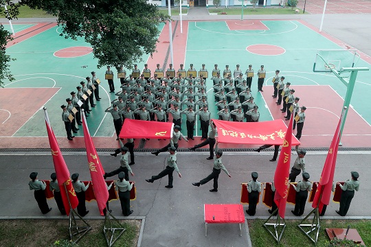 圖為新兵下連第一課,舉行入連儀式。易定 攝