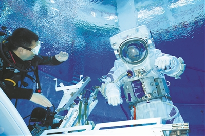 這是該中心模擬出艙訓(xùn)練的主要場地。航天員教員趙陽與航天員一起開展水下訓(xùn)練,已很長時間。一旦忙起來,趙陽一天只睡4個小時、吃一頓飯。教員的任務(wù)是分解每個動作,細(xì)化每個姿態(tài),幫助航天員迅速、安全地找到返回的路。