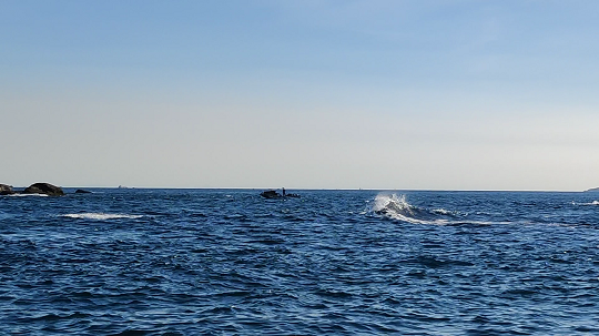 由于當時正值天文大潮期,海面能見度較低且事發(fā)海域礁石過多,執(zhí)法艇到達現(xiàn)場后通過電話與該名遇險漁民進行通聯(lián),并對海面進行搜索。6時20分許,執(zhí)法艇發(fā)現(xiàn)了該艘事發(fā)船只,由于當時潮水較低導致海警執(zhí)法艇無法接近事發(fā)船舶。在確定人員沒有生命危險后,執(zhí)法員根據(jù)救援現(xiàn)場立即啟動應急預案,通過廣播喊話提醒該名遇險漁民穿戴好救生衣,打開船舶信號燈,將船錨拋入礁盤固定船位,保持好通信暢通,同時執(zhí)法艇在周邊進行警戒,防止出現(xiàn)二次事故發(fā)生。