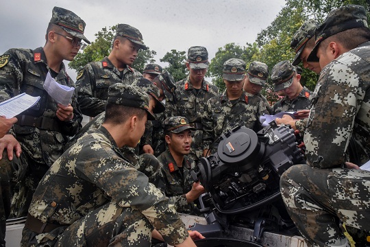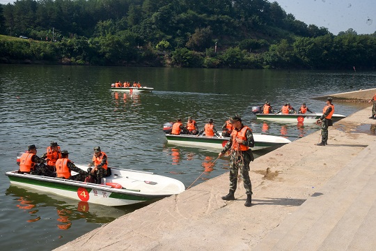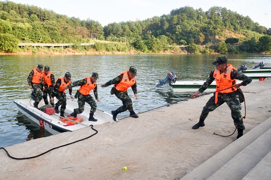 針對駐地雨季歷時較長、降雨量偏多,可能出現(xiàn)持續(xù)性暴雨過程,防汛形勢較為嚴峻的情況,此次集訓把環(huán)境設(shè)險,把情況設(shè)全,把練技術(shù)、練心理與練作風結(jié)合起來,按照理論講解與實際操作相結(jié)合、考核評比與綜合訓練相結(jié)合的方法,對沖鋒舟機械理論、舷外機的安裝與啟動、故障排除、船艇直行、S型航行、水上營救等內(nèi)容進行強化訓練。