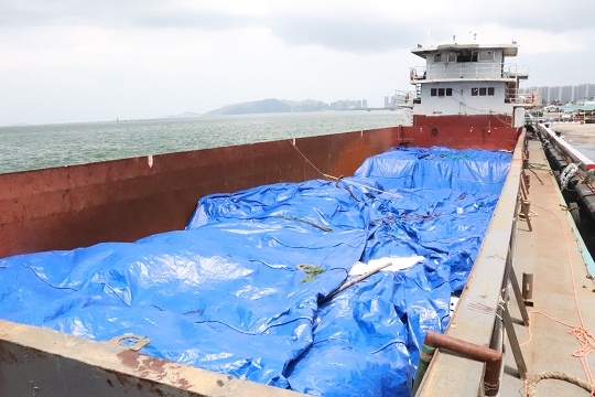 經(jīng)過2個(gè)多小時(shí)的搜索,海警巡邏艦成功在目標(biāo)海域發(fā)現(xiàn)嫌疑船只,海警執(zhí)法員隨即依法進(jìn)行登船檢查。經(jīng)查,該嫌疑船船倉內(nèi)裝有大量黑色及白色塑料袋,袋內(nèi)裝有疑似來自境外的凍豬耳、凍豬肚等凍品約190噸,現(xiàn)場抓獲3名嫌疑人,且隨船未能找到該批凍品的任何合法來源證明。