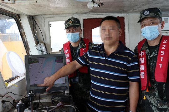 圖為對船舶負責(zé)人進行現(xiàn)場詢問。