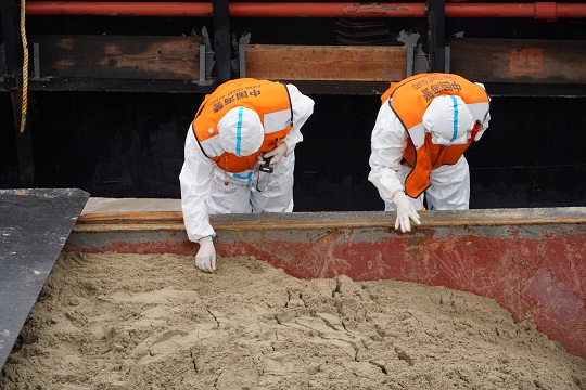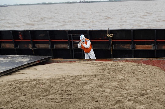 當(dāng)日清晨,上海寶山海警局獲悉,有1艘涉嫌非法運(yùn)砂的貨船進(jìn)入管轄海域,該局立即派遣正在巡邏的執(zhí)法船前往核查。執(zhí)法船接到命令后迅速前往其途徑海域攔截,經(jīng)過核查比對,執(zhí)法艇在1小時內(nèi)迅速鎖定嫌疑船只。執(zhí)法人員登船后發(fā)現(xiàn),該船貨艙內(nèi)共裝有海砂1000余噸,且無法提供任何相關(guān)合法手續(xù),涉嫌非法運(yùn)砂。目前,案件正在進(jìn)一步偵辦中。
