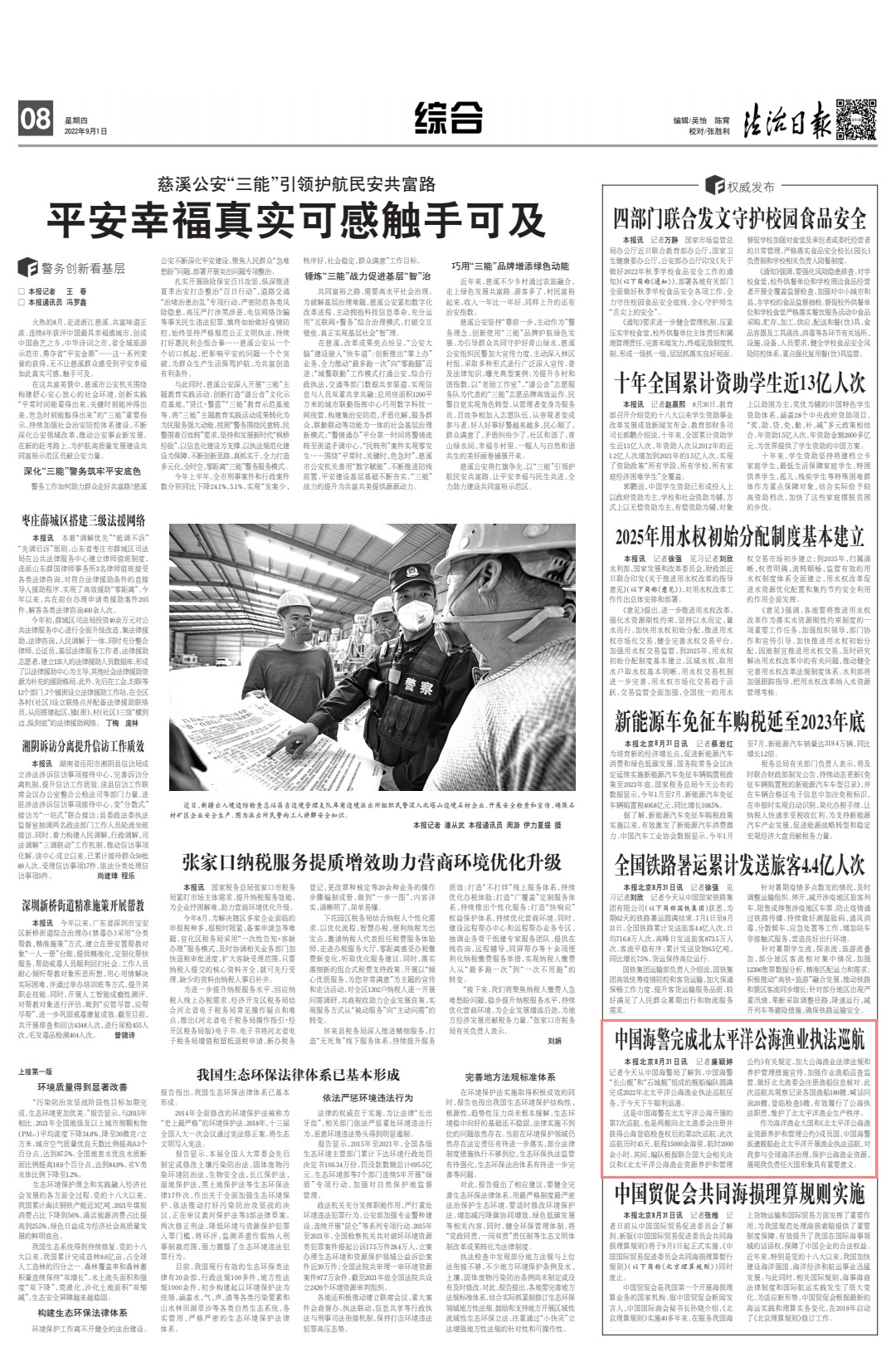 本報訊 記者廉穎婷 記者8月31日從中國海警局了解到,中國海警“長山艦”和“石城艦”組成的艦船編隊圓滿完成2022年北太平洋公海漁業(yè)執(zhí)法巡航任務(wù),于今天下午順利返港。