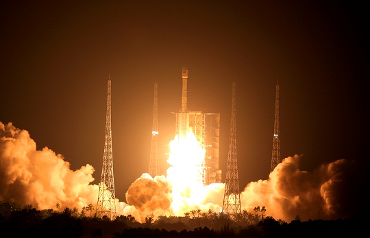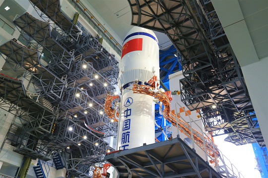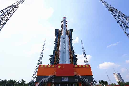 9月13日晚,中國文昌航天發(fā)射場。探照燈下,長征七號改遙五運載火箭蓄勢待發(fā)、劍指蒼穹。