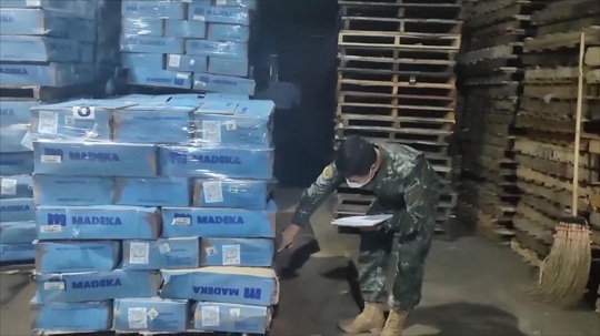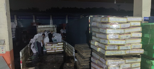 經(jīng)查,該嫌疑船艙內(nèi)滿裝大量白色編制袋貨物一批,經(jīng)開箱查驗(yàn),發(fā)現(xiàn)箱內(nèi)裝有涉嫌走私雪花牛肉、牛黃喉、牛百葉等來源不明凍品,共約200余噸。隨船人員均未能提供船舶證件及該批貨物合格來源相關(guān)證明,隨即執(zhí)法員依法對涉案船舶及所載凍品進(jìn)行查扣。