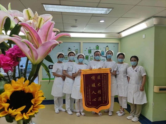 圖為孫文信老人手術(shù)成功后醫(yī)護(hù)人員給他送上祝福的鮮花。