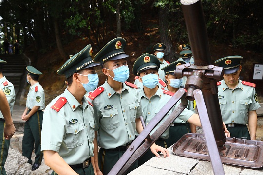 圖為武警井岡山中隊(duì)新兵在井岡山黃洋界保衛(wèi)戰(zhàn)舊址了解革命故事。