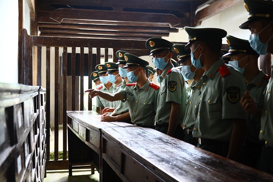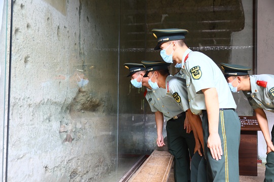 圖為武警井岡山中隊(duì)新兵在井岡山大井毛澤東舊居了解革命舊址情況。
