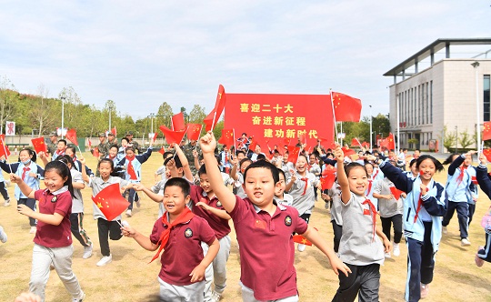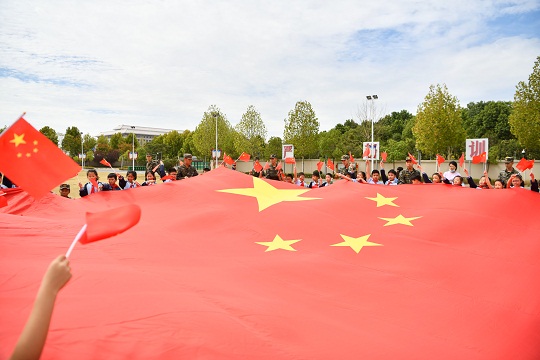 本報訊 通訊員徐偉 9月24日,在武警安徽總隊(duì)合肥支隊(duì)執(zhí)勤一大隊(duì)營區(qū),武警官兵與小學(xué)生手持國旗一起歡呼奔跑。