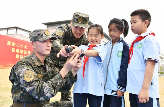 當(dāng)日,武警合肥支隊(duì)舉行以“大手拉小手,探秘軍營迎國慶”為主題的軍營開放日活動,駐地學(xué)校百余名小學(xué)生探秘軍營,通過觀摩軍事課目演示、學(xué)疊軍被、參觀武器裝備、體驗(yàn)軍事動作、參觀軍史長廊等活動,讓孩子們零距離體驗(yàn)軍營生活,接受國防教育和愛國主義教育。