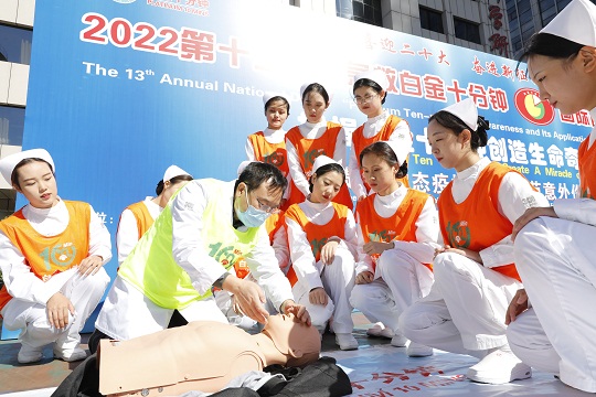 有研究顯示:我國每年猝死發(fā)生數(shù)量已經(jīng)由10多年前的54.5萬增加到100萬人左右,其中65%發(fā)生在頭10分鐘左右的時間內(nèi),常常發(fā)生在家中、工作崗位、公共交通或活動等場所,我國每年因創(chuàng)傷就醫(yī)人數(shù)達(dá)6200萬人次,致死70萬人,其中25%約17.5萬人是在10分鐘內(nèi)死于現(xiàn)場。為了滿足軍地急救需要,何忠杰主任醫(yī)師團(tuán)隊于2010年10月10日10時,發(fā)起“白金十分鐘全國自救互救志愿服務(wù)聯(lián)盟”,開展“急救白金十分鐘·全國自救互救日”公益活動?;顒右唤?jīng)推出,醫(yī)療同行和廣大軍民群眾踴躍參加,“科普技術(shù)+白金十分鐘MV+廣場舞大賽”的“自救互救日”文化悄然興起,在補齊了應(yīng)急急救鏈的同時挽救了更多人的生命。