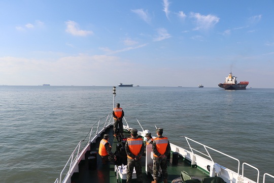 為進一步提升巡邏管控質效,維護轄區(qū)海域安全穩(wěn)定,山東威海海警局聯(lián)合海岸警察、漁政、海事等多家涉海職能單位,開展海上聯(lián)合巡航,對海上治安、海洋生態(tài)環(huán)境保護、海上重點目標設施守護、漁船管控及嚴防疫情海上輸入等方面進行重點檢查,以《中華人民共和國海警法》為重點,對涉海人員開展普法教育,同時對漁船民進行安全生產注意事項、疫情防控宣傳教育。涉海部門發(fā)揮各自職能優(yōu)勢,形成有效聯(lián)動,起到良好成效,得到了轄區(qū)涉海企業(yè)和人員的廣泛認可。