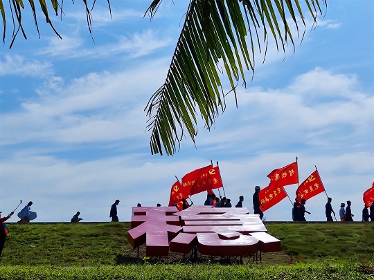 在文昌航天發(fā)射場,每次發(fā)射前都有一項(xiàng)特殊的出征儀式——火箭垂直轉(zhuǎn)運(yùn)。航天工作者深情凝望火箭活動(dòng)發(fā)射平臺上鮮紅的國旗和轉(zhuǎn)運(yùn)動(dòng)員標(biāo)語,或揮舞國旗,或高唱紅歌,或講述黨史故事……執(zhí)行空間站建造任務(wù)這兩年來,這些轉(zhuǎn)運(yùn)標(biāo)語見證記錄著祖國航天事業(yè)的騰飛,也為建造太空家園注入不竭的精神動(dòng)力。