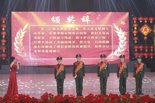 1月15日晚,武警青??傟犜诖蠖Y堂隆重舉行“踐行強軍目標(biāo)”先進(jìn)典型頒獎典禮暨“迎新春”文藝演出。晚會將頒獎環(huán)節(jié)與文藝節(jié)目穿插融合,運用“現(xiàn)場直播+實時轉(zhuǎn)播”形式,讓總隊全體官兵歡聚一堂,賀先進(jìn),迎新春。